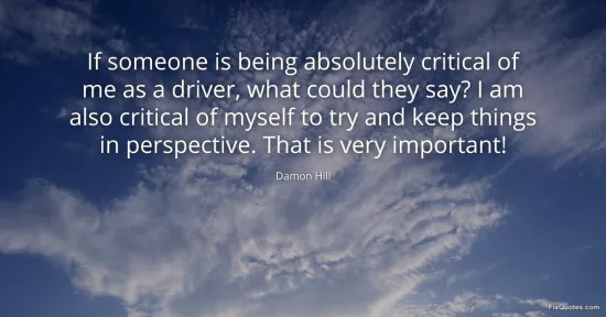 Hill, Damon. (2026, February 19). If someone is being absolutely critical of me as a driver, what could they say? I am also critical of myself to try and keep things in perspective. That is very important! FixQuotes. https://fixquotes.com/quotes/if-someone-is-being-absolutely-critical-of-me-as-40836/