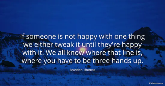Thomas, Brandon. (2026, January 16). If someone is not happy with one thing we either tweak it until they're happy with it. We all know where that line is, where you have to be three hands up. FixQuotes. https://fixquotes.com/quotes/if-someone-is-not-happy-with-one-thing-we-either-126136/