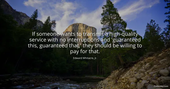 Jr., Edward Whitacre,. "If someone wants to transmit a high-quality service with no interruptions and 'guaranteed this, guaranteed that,' they should be willing to pay for that." FixQuotes. January 17, 2026. https://fixquotes.com/quotes/if-someone-wants-to-transmit-a-high-quality-74319/.