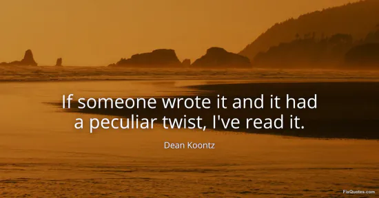 Koontz, Dean. (2026, January 17). If someone wrote it and it had a peculiar twist, I've read it. FixQuotes. https://fixquotes.com/quotes/if-someone-wrote-it-and-it-had-a-peculiar-twist-38283/