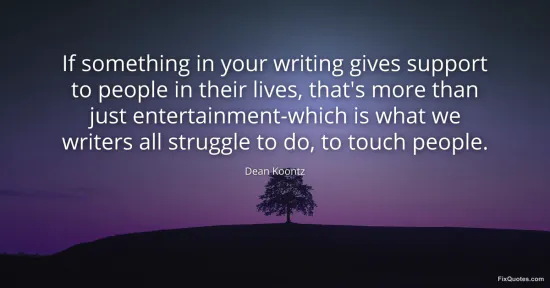 Koontz, Dean. (2026, January 17). If something in your writing gives support to people in their lives, that's more than just entertainment-which is what we writers all struggle to do, to touch people. FixQuotes. https://fixquotes.com/quotes/if-something-in-your-writing-gives-support-to-43301/