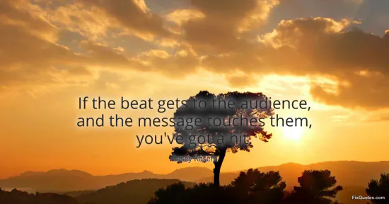 "If the beat gets to the audience, and the message touches them, you've got a hit." FixQuotes, 15 Jan. 2026, https://fixquotes.com/quotes/if-the-beat-gets-to-the-audience-and-the-message-140111/. Accessed 12 Feb. 2026.