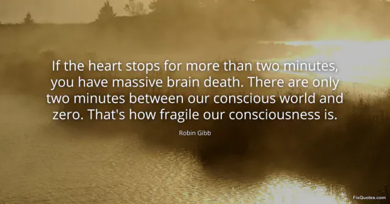Gibb, Robin. (2026, January 16). If the heart stops for more than two minutes, you have massive brain death. There are only two minutes between our conscious world and zero. That's how fragile our consciousness is. FixQuotes. https://fixquotes.com/quotes/if-the-heart-stops-for-more-than-two-minutes-you-94409/