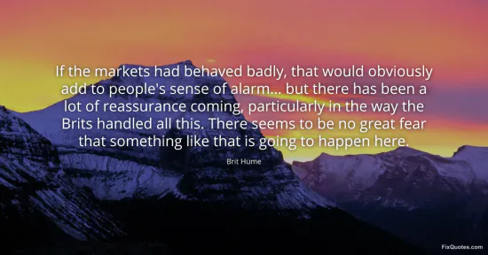 Hume, Brit. (2026, January 17). If the markets had behaved badly, that would obviously add to people's sense of alarm... but there has been a lot of reassurance coming, particularly in the way the Brits handled all this. There seems to be no great fear that something like that is going to happen here. FixQuotes. https://fixquotes.com/quotes/if-the-markets-had-behaved-badly-that-would-50383/