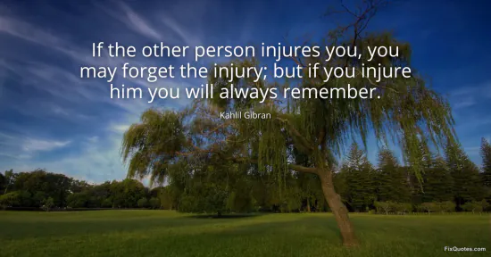 Gibran, Kahlil. (2026, January 17). If the other person injures you, you may forget the injury; but if you injure him you will always remember. FixQuotes. https://fixquotes.com/quotes/if-the-other-person-injures-you-you-may-forget-35453/