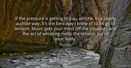 Zoeller, Fuzzy. (2026, January 15). If the pressure is getting to you, whistle. In a barely audible way. It's the best way I know of to let go of tension. Music gets your mind off the situation, and the act of whistling melts the tension out of your body. FixQuotes. https://fixquotes.com/quotes/if-the-pressure-is-getting-to-you-whistle-in-a-158281/