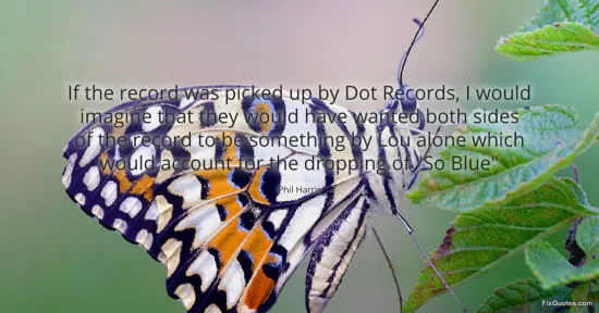 Harris, Phil. "If the record was picked up by Dot Records, I would imagine that they would have wanted both sides of the record to be something by Lou alone which would account for the dropping of "So Blue"." FixQuotes. January 16, 2026. https://fixquotes.com/quotes/if-the-record-was-picked-up-by-dot-records-i-82812/.