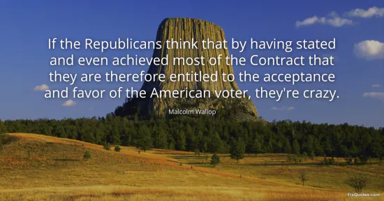 Wallop, Malcolm. "If the Republicans think that by having stated and even achieved most of the Contract that they are therefore entitled to the acceptance and favor of the American voter, they're crazy." FixQuotes. January 16, 2026. https://fixquotes.com/quotes/if-the-republicans-think-that-by-having-stated-114449/.