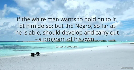 Woodson, Carter G. "If the white man wants to hold on to it, let him do so; but the Negro, so far as he is able, should develop and carry out a program of his own." FixQuotes. January 17, 2026. https://fixquotes.com/quotes/if-the-white-man-wants-to-hold-on-to-it-let-him-73466/.