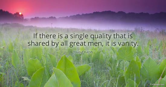 Karsh’s line lands like a flashbulb: flattering at first, then slightly cruel. A man who spent his life photographing the famous is telling you what his lens kept finding, even under the grandest lighting setup. “Great men” here isn’t a moral title; it’s a social category, a product of publicity, access, and timing. Karsh knows the currency of greatness is attention, and vanity is the appetite that keeps that economy running.