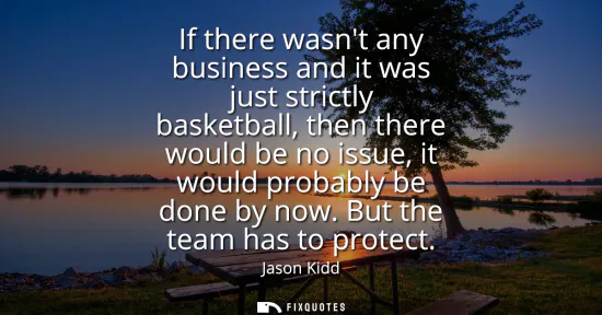 "If there wasn't any business and it was just strictly basketball, then there would be no issue, it would probably be done by now. But the team has to protect"