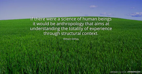 Dilthey is dangling a provocation: if you insist on calling the study of people a "science", you can’t mean a lab-style machine for producing universal laws. You have to mean a disciplined way of understanding lived life as it actually unfolds. That’s why he points to anthropology and then immediately raises the stakes with "totality of experience" and "structural context". He’s not praising armchair speculation; he’s drawing a boundary around what counts as legitimate knowledge of human beings.