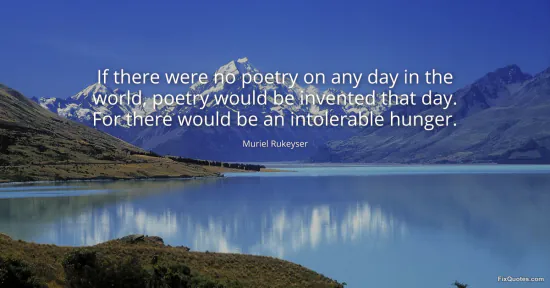 Rukeyser, Muriel. "If there were no poetry on any day in the world, poetry would be invented that day. For there would be an intolerable hunger." FixQuotes. January 15, 2026. https://fixquotes.com/quotes/if-there-were-no-poetry-on-any-day-in-the-world-151079/.