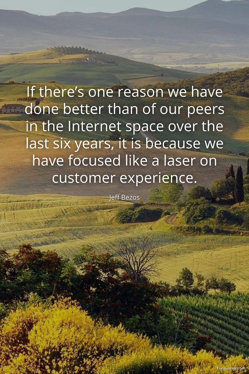 Bezos, Jeff. "If there’s one reason we have done better than of our peers in the Internet space over the last six years, it is because we have focused like a laser on customer experience." FixQuotes. March 25, 2026. https://fixquotes.com/quotes/if-theres-one-reason-we-have-done-better-than-of-186446/.