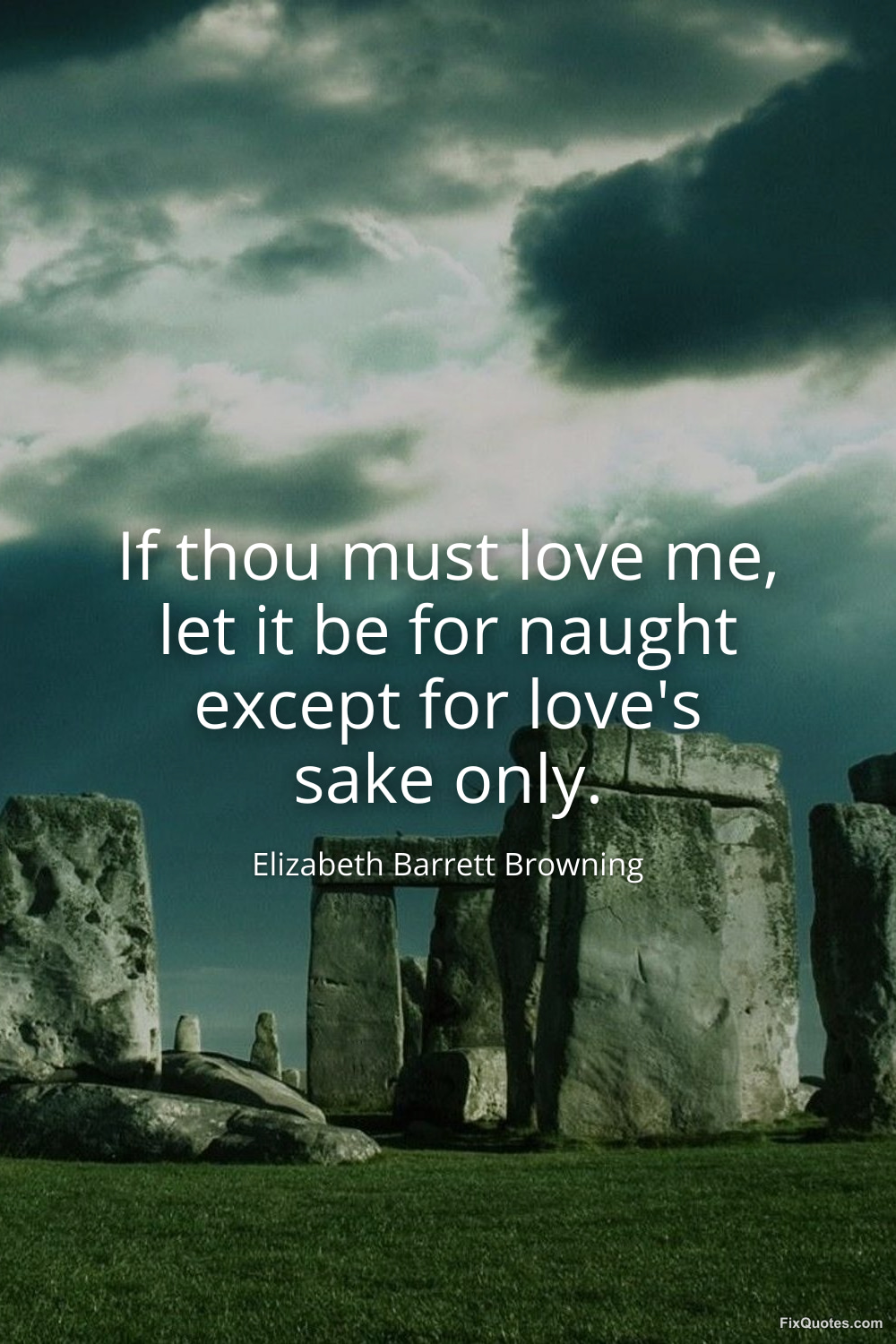 Browning, Elizabeth Barrett. (2026, January 18). If thou must love me, let it be for naught except for love's sake only. FixQuotes. https://fixquotes.com/quotes/if-thou-must-love-me-let-it-be-for-naught-except-3423/
