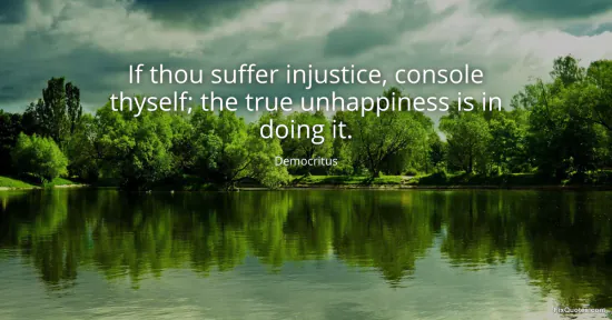 Democritus. "If thou suffer injustice, console thyself; the true unhappiness is in doing it." FixQuotes. January 17, 2026. https://fixquotes.com/quotes/if-thou-suffer-injustice-console-thyself-the-true-27221/.