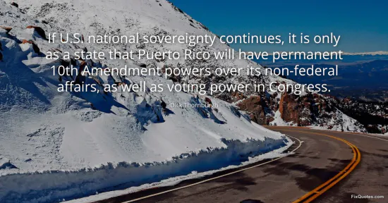Thornburgh, Dick. (2026, January 15). If U.S. national sovereignty continues, it is only as a state that Puerto Rico will have permanent 10th Amendment powers over its non-federal affairs, as well as voting power in Congress. FixQuotes. https://fixquotes.com/quotes/if-us-national-sovereignty-continues-it-is-only-143193/