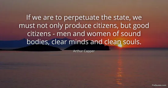 Capper, Arthur. "If we are to perpetuate the state, we must not only produce citizens, but good citizens - men and women of sound bodies, clear minds and clean souls." FixQuotes. January 17, 2026. https://fixquotes.com/quotes/if-we-are-to-perpetuate-the-state-we-must-not-37615/.