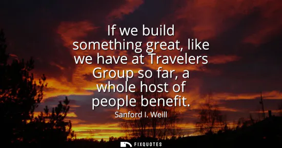 Corporate optimism always comes with a pronoun problem, and Sanford Weill’s line is a masterclass in it. “If we build something great” sounds communal, almost civic-minded, but it’s also a carefully engineered moral alibi for scale. Greatness here isn’t aesthetic; it’s institutional bigness, the kind that consolidates power, attracts capital, and remakes markets. The conditional “If” is strategic, too: it frames expansion as a prudent experiment rather than an aggressive bid, even when the speaker is one of the most influential dealmakers of his era.