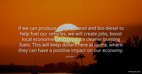 Renzi, Rick. "If we can produce more ethanol and bio-diesel to help fuel our vehicles, we will create jobs, boost local economies and produce cleaner burning fuels. This will keep dollars here at home, where they can have a positive impact on our economy." FixQuotes. February 16, 2026. https://fixquotes.com/quotes/if-we-can-produce-more-ethanol-and-bio-diesel-to-149933/.