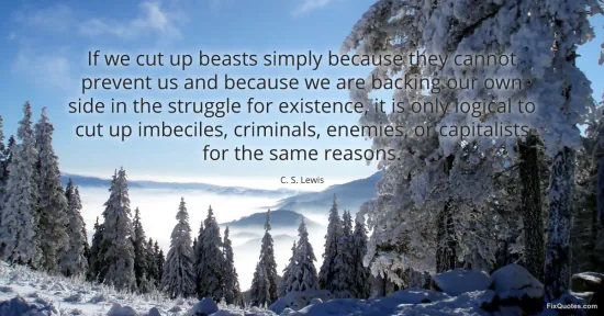 Lewis, C. S. (2026, January 15). If we cut up beasts simply because they cannot prevent us and because we are backing our own side in the struggle for existence, it is only logical to cut up imbeciles, criminals, enemies, or capitalists for the same reasons. FixQuotes. https://fixquotes.com/quotes/if-we-cut-up-beasts-simply-because-they-cannot-18351/