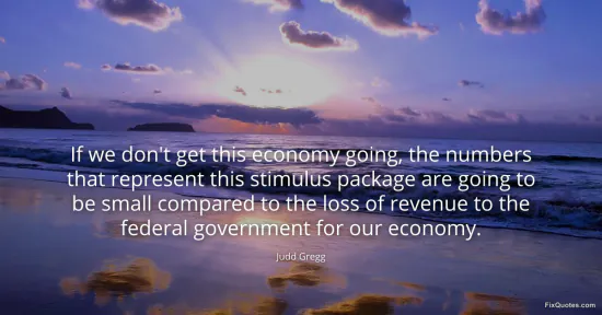 Gregg, Judd. "If we don't get this economy going, the numbers that represent this stimulus package are going to be small compared to the loss of revenue to the federal government for our economy." FixQuotes. January 16, 2026. https://fixquotes.com/quotes/if-we-dont-get-this-economy-going-the-numbers-109743/.