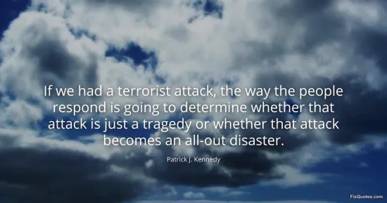 Kennedy, Patrick J. "If we had a terrorist attack, the way the people respond is going to determine whether that attack is just a tragedy or whether that attack becomes an all-out disaster." FixQuotes. January 17, 2026. https://fixquotes.com/quotes/if-we-had-a-terrorist-attack-the-way-the-people-65221/.