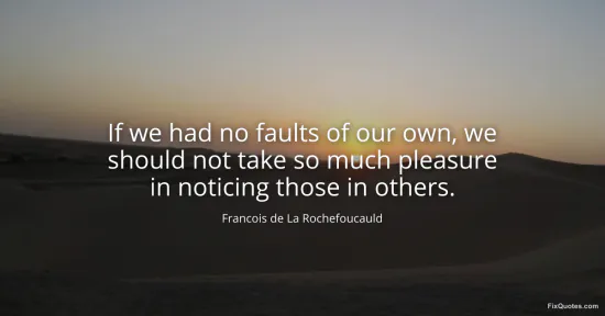 Rochefoucauld, Francois de La. "If we had no faults of our own, we should not take so much pleasure in noticing those in others." FixQuotes. January 15, 2026. https://fixquotes.com/quotes/if-we-had-no-faults-of-our-own-we-should-not-take-13082/.