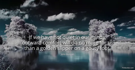 Bunyan, John. (2026, January 16). If we have not quiet in our minds, outward comfort will do no more for us than a golden slipper on a gouty foot. FixQuotes. https://fixquotes.com/quotes/if-we-have-not-quiet-in-our-minds-outward-comfort-118909/