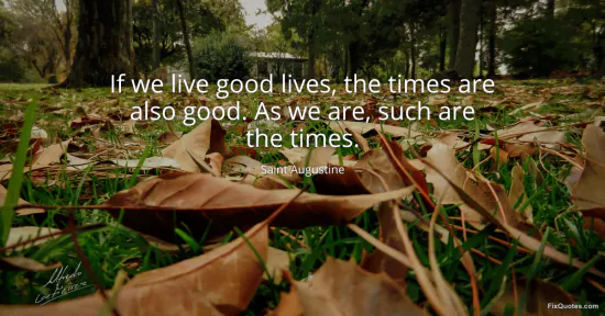 Augustine, Saint. "If we live good lives, the times are also good. As we are, such are the times." FixQuotes. January 15, 2026. https://fixquotes.com/quotes/if-we-live-good-lives-the-times-are-also-good-as-17474/.