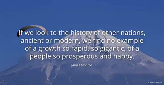 Monroe, James. (2026, January 15). If we look to the history of other nations, ancient or modern, we find no example of a growth so rapid, so gigantic, of a people so prosperous and happy. FixQuotes. https://fixquotes.com/quotes/if-we-look-to-the-history-of-other-nations-75959/