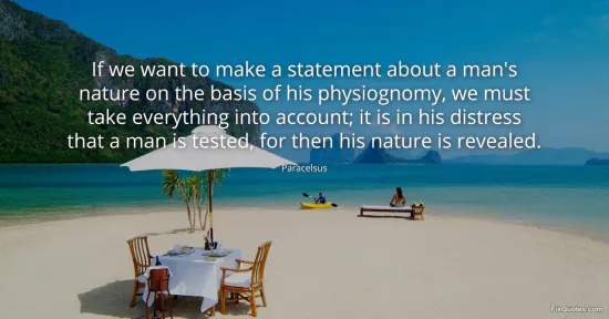 Paracelsus. (2026, January 15). If we want to make a statement about a man's nature on the basis of his physiognomy, we must take everything into account; it is in his distress that a man is tested, for then his nature is revealed. FixQuotes. https://fixquotes.com/quotes/if-we-want-to-make-a-statement-about-a-mans-143406/