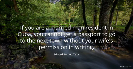 Tylor, Edward Burnett. (2026, January 15). If you are a married man resident in Cuba, you cannot get a passport to go to the next town without your wife's permission in writing. FixQuotes. https://fixquotes.com/quotes/if-you-are-a-married-man-resident-in-cuba-you-141467/