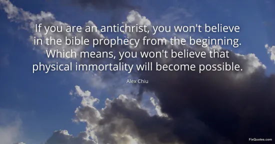 Chiu, Alex. (2026, January 16). If you are an antichrist, you won't believe in the bible prophecy from the beginning. Which means, you won't believe that physical immortality will become possible. FixQuotes. https://fixquotes.com/quotes/if-you-are-an-antichrist-you-wont-believe-in-the-138815/