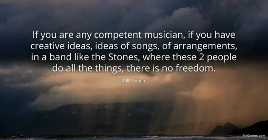 Wyman, Bill. "If you are any competent musician, if you have creative ideas, ideas of songs, of arrangements, in a band like the Stones, where these 2 people do all the things, there is no freedom." FixQuotes. January 18, 2026. https://fixquotes.com/quotes/if-you-are-any-competent-musician-if-you-have-7038/.