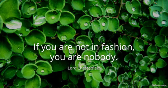 Chesterfield, Lord. (2026, January 15). If you are not in fashion, you are nobody. FixQuotes. https://fixquotes.com/quotes/if-you-are-not-in-fashion-you-are-nobody-16139/