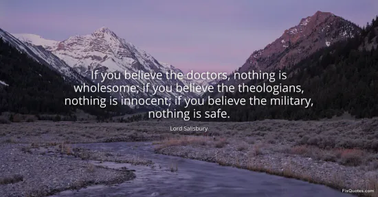 Salisbury, Lord. "If you believe the doctors, nothing is wholesome; if you believe the theologians, nothing is innocent; if you believe the military, nothing is safe." FixQuotes. January 15, 2026. https://fixquotes.com/quotes/if-you-believe-the-doctors-nothing-is-wholesome-147518/.