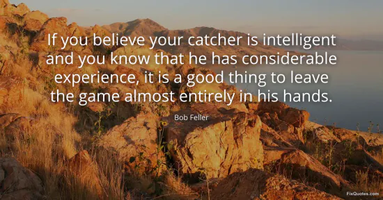 Feller, Bob. (2026, January 15). If you believe your catcher is intelligent and you know that he has considerable experience, it is a good thing to leave the game almost entirely in his hands. FixQuotes. https://fixquotes.com/quotes/if-you-believe-your-catcher-is-intelligent-and-142005/