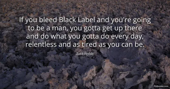 Wylde, Zakk. "If you bleed Black Label and you're going to be a man, you gotta get up there and do what you gotta do every day, relentless and as tired as you can be." FixQuotes. January 16, 2026. https://fixquotes.com/quotes/if-you-bleed-black-label-and-youre-going-to-be-a-120915/.