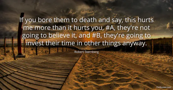 Sternberg, Robert. (2026, January 15). If you bore them to death and say, this hurts me more than it hurts you, #A, they're not going to believe it, and #B, they're going to invest their time in other things anyway. FixQuotes. https://fixquotes.com/quotes/if-you-bore-them-to-death-and-say-this-hurts-me-75510/
