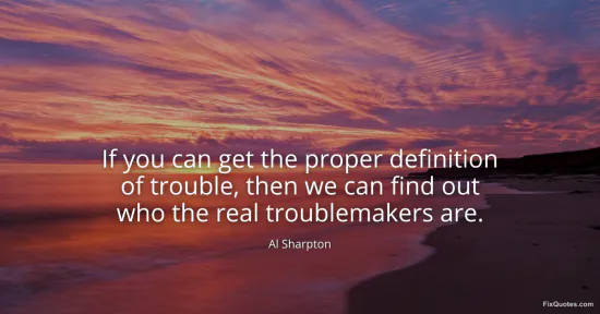 Sharpton, Al. (2026, January 17). If you can get the proper definition of trouble, then we can find out who the real troublemakers are. FixQuotes. https://fixquotes.com/quotes/if-you-can-get-the-proper-definition-of-trouble-36852/