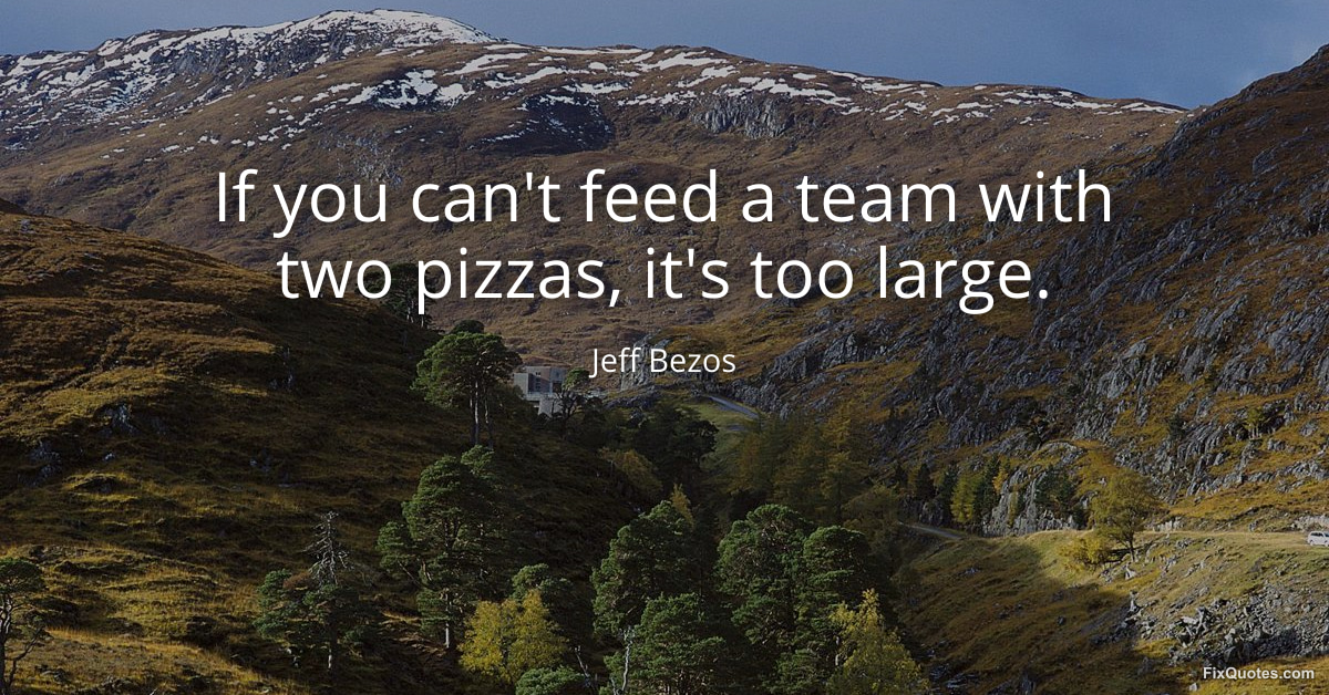 Bezos, Jeff. (2026, March 25). If you can't feed a team with two pizzas, it's too large. FixQuotes. https://fixquotes.com/quotes/if-you-cant-feed-a-team-with-two-pizzas-its-too-186349/