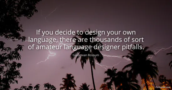Rossum, Guido van. (2026, January 17). If you decide to design your own language, there are thousands of sort of amateur language designer pitfalls. FixQuotes. https://fixquotes.com/quotes/if-you-decide-to-design-your-own-language-there-53670/