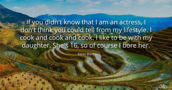 Black, Karen. "If you didn't know that I am an actress, I don't think you could tell from my lifestyle. I cook and cook and cook. I like to be with my daughter. She's 16, so of course I bore her." FixQuotes. January 15, 2026. https://fixquotes.com/quotes/if-you-didnt-know-that-i-am-an-actress-i-dont-161459/.