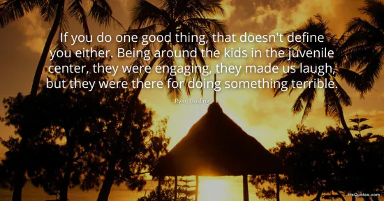 Gosling, Ryan. (2026, February 18). If you do one good thing, that doesn't define you either. Being around the kids in the juvenile center, they were engaging, they made us laugh, but they were there for doing something terrible. FixQuotes. https://fixquotes.com/quotes/if-you-do-one-good-thing-that-doesnt-define-you-73603/