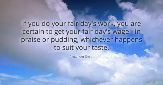 Smith, Alexander. (2026, January 18). If you do your fair day's work, you are certain to get your fair day's wage - in praise or pudding, whichever happens to suit your taste. FixQuotes. https://fixquotes.com/quotes/if-you-do-your-fair-days-work-you-are-certain-to-20976/