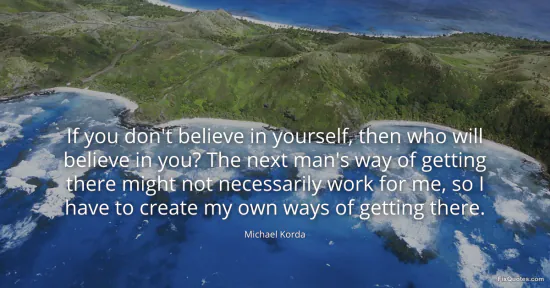 Korda, Michael. (2026, January 15). If you don't believe in yourself, then who will believe in you? The next man's way of getting there might not necessarily work for me, so I have to create my own ways of getting there. FixQuotes. https://fixquotes.com/quotes/if-you-dont-believe-in-yourself-then-who-will-152450/