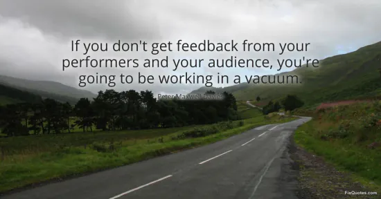Davies, Peter Maxwell. "If you don't get feedback from your performers and your audience, you're going to be working in a vacuum." FixQuotes. January 16, 2026. https://fixquotes.com/quotes/if-you-dont-get-feedback-from-your-performers-and-90514/.