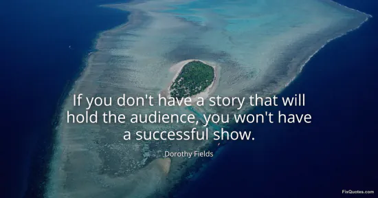 Fields, Dorothy. "If you don't have a story that will hold the audience, you won't have a successful show." FixQuotes. January 17, 2026. https://fixquotes.com/quotes/if-you-dont-have-a-story-that-will-hold-the-60805/.