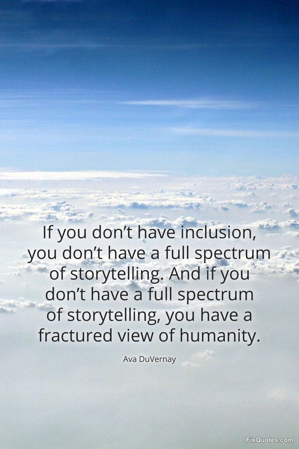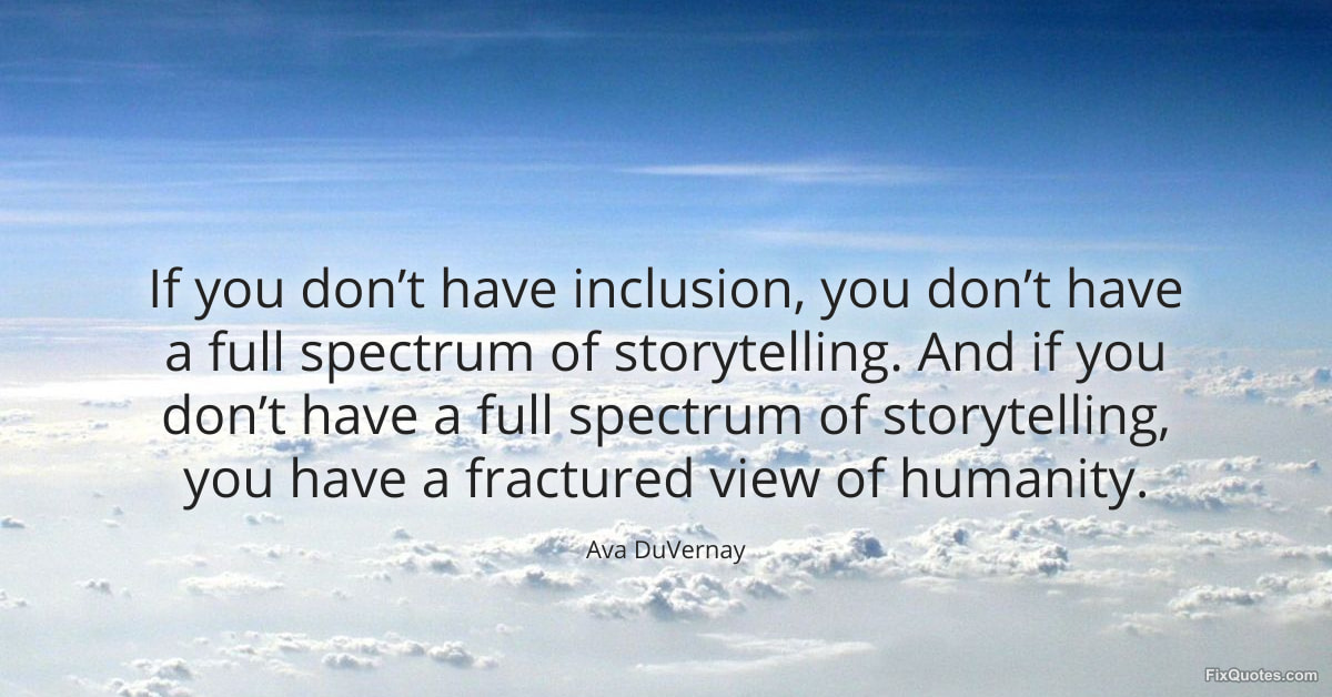 DuVernay, Ava. (2026, January 25). If you don’t have inclusion, you don’t have a full spectrum of storytelling. And if you don’t have a full spectrum of storytelling, you have a fractured view of humanity. FixQuotes. https://fixquotes.com/quotes/if-you-dont-have-inclusion-you-dont-have-a-full-184231/